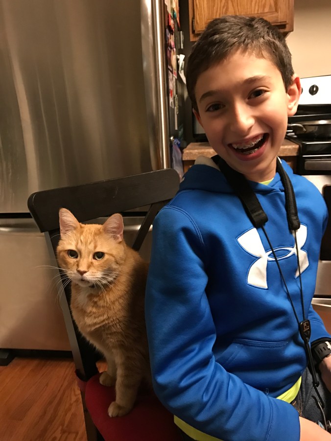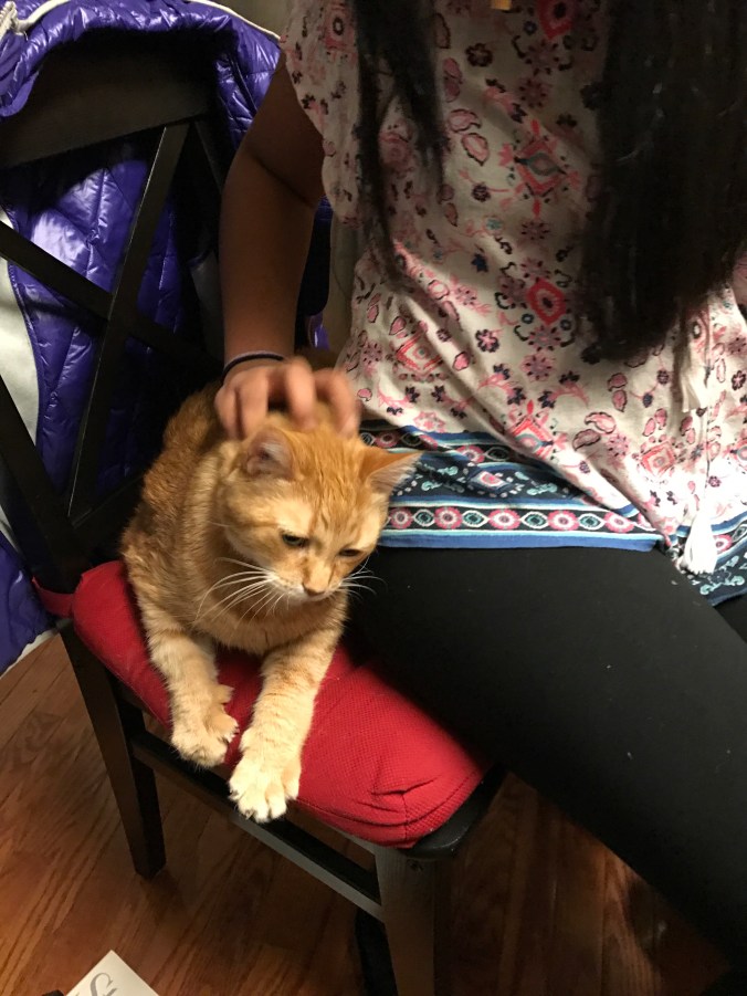 Kevin is the sweetest, most gentle, and loving cat any person could meet, and he loves my students so very much. Looks like the feelings are mutual, at least today: